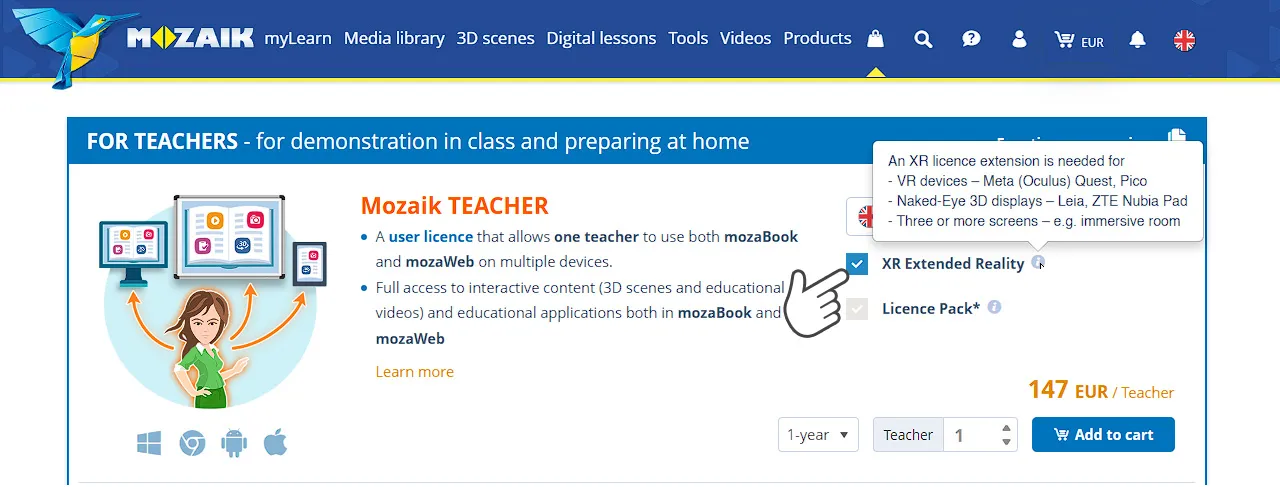 XR许可扩展允许您在三屏或多屏设备上使用mozaBook及其中包含的3D场景。