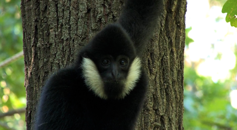 The crested gibbon swings through the trees of Southeast Asia’s monsoon forests with acrobatic agility.