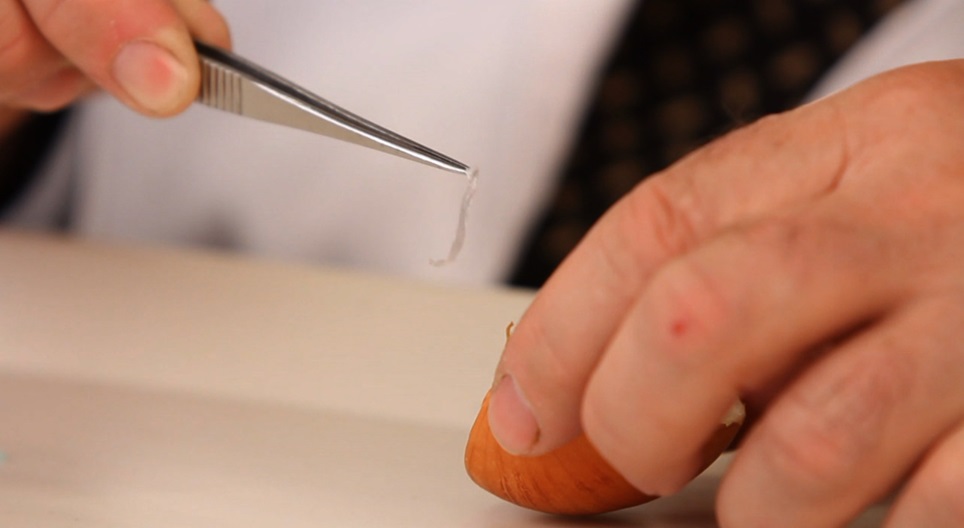 Examination of long, rectangular onion epidermal cells under the microscope at 100x magnification.