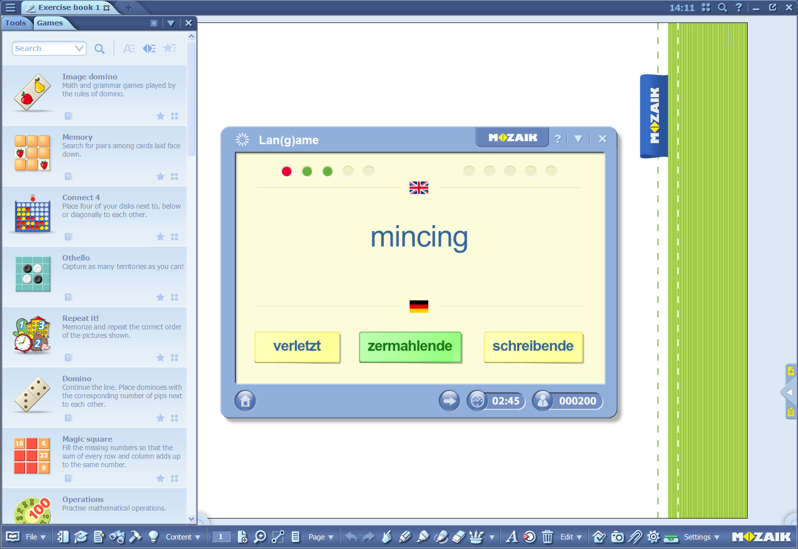 Let us begin with some options in mozaBook purely designed for language teaching. For example, have you checked out the language learning related games, like Lan(g)ame or Word class?