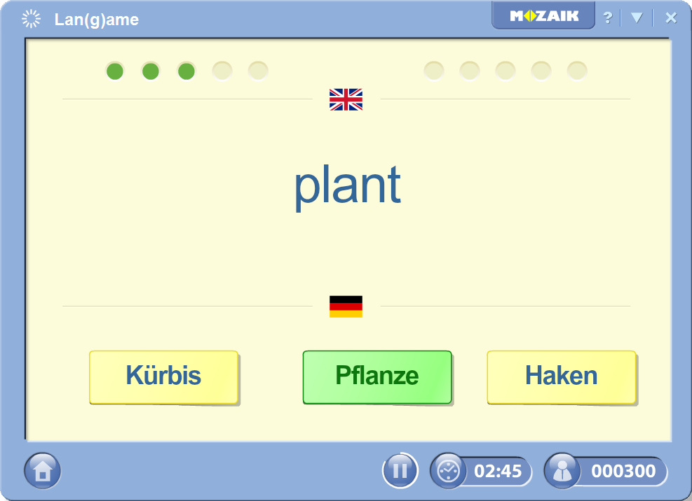 In Lan(g)ame, just select the language pair you wish to practice and try to score as many points as you can by determining the meaning of words.