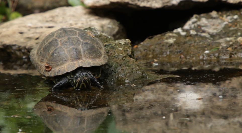 아이들이 많이 좋아하는 애완동물입니다. 눈 뒤에서 보이는 빨간색 얼룩을 보니까 쉽게 알아채기 가능합니다.