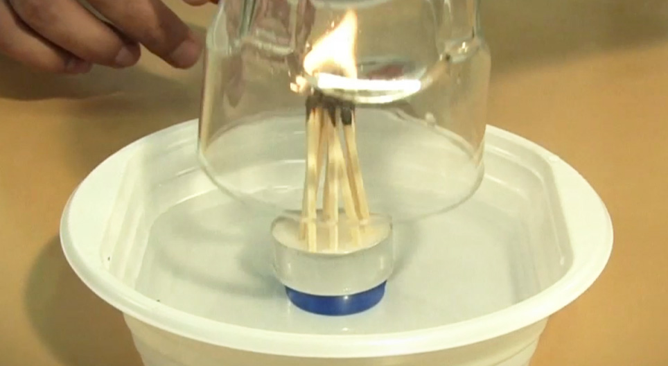 This experiment shows you how to draw water into an inverted glass using a few burning matchsticks.