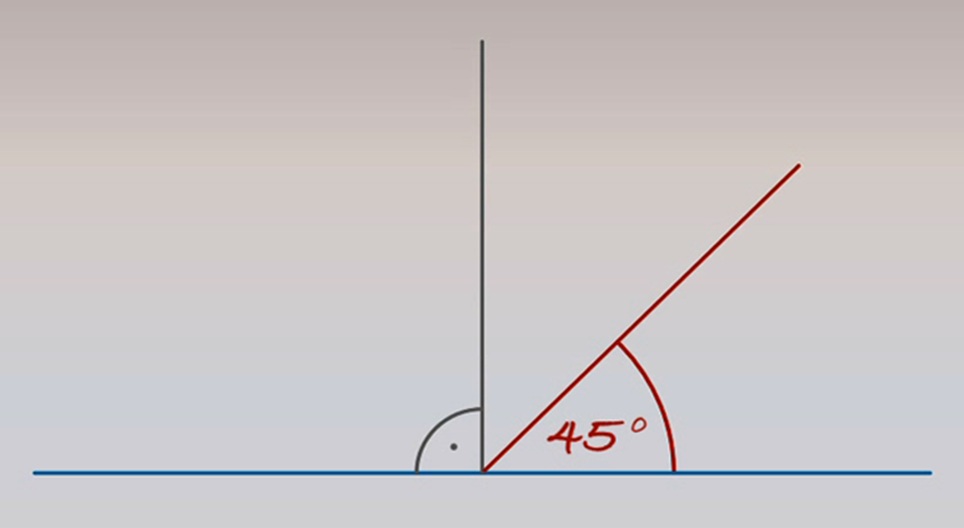 Przez przecięcie 180° kąta uzyskujemy kąt prosty o 90°. Przez powtórne przecięcie tego kąta, otrzymamy kąt 45°.