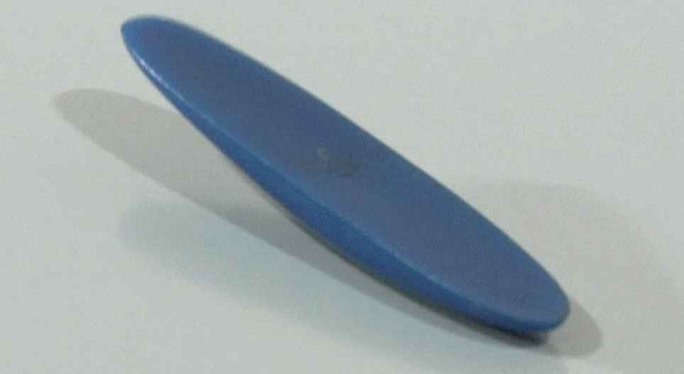 The rattleback is a rigid, cigar-shaped object cut in half along its longitudinal axis.