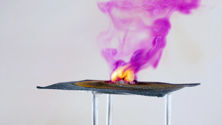 Glin reaguje z jodem w obecnosci kilku kropel wody jako katalizatora reakcji.