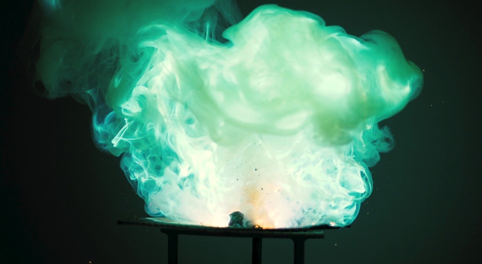 Po podgrzaniu sproszkowana siarka reaguje ze sproszkowanym cynkiem, uwalniając ciepło.