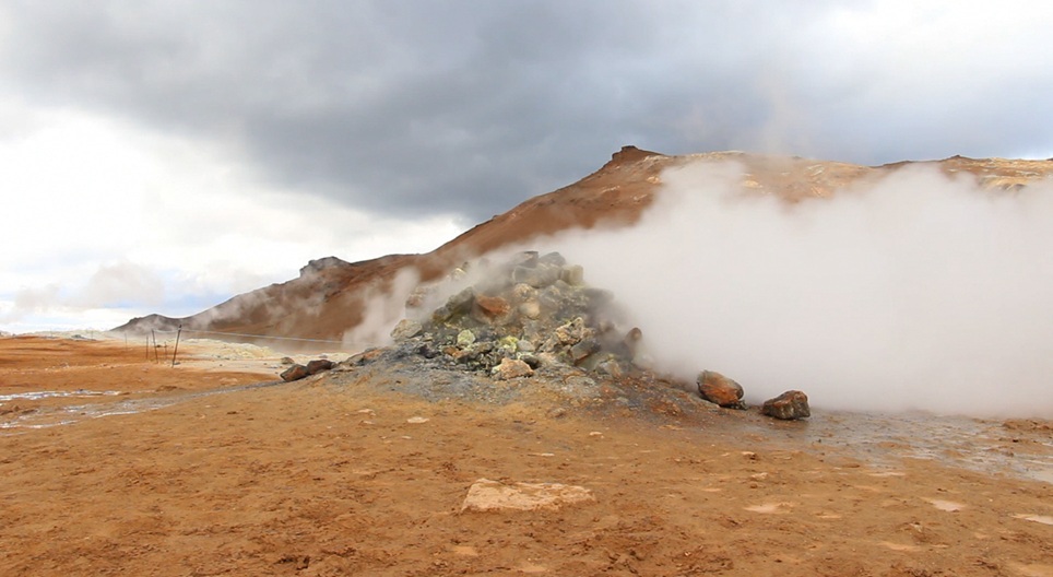 Na obszarach gorących punktów jednym ze spektakularnych wyników aktywności wulkanicznej są wybuchy wody, pary wodnej i siarki. Dzięki tym zjawiskom następuje przebarwienie otaczającego terenu, który przypomina marsjański krajobraz.