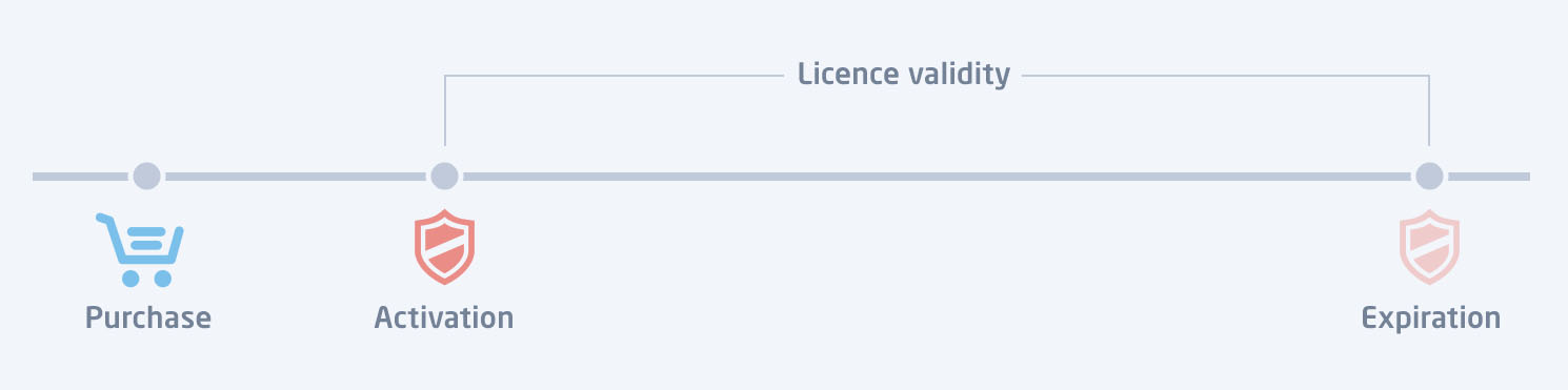 Okres ważności licencji liczy się od momentu aktywacji, a nie od momentu zakupu licencji. Okres ważności zaczyna się w dniu aktywacji i trwa przez okres podany w momencie zakupu licencji.