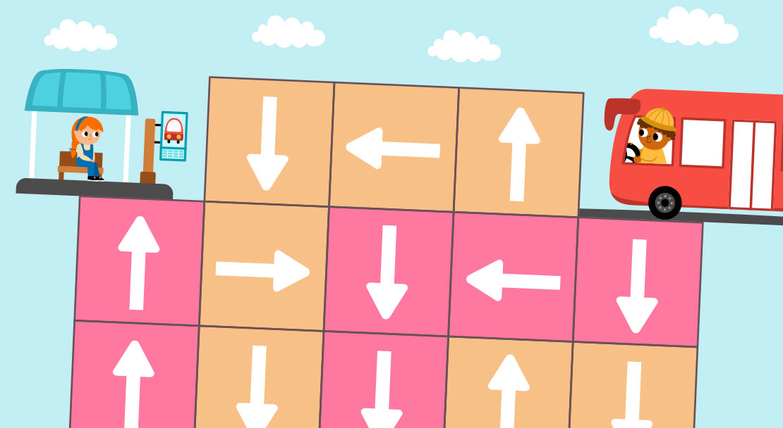 Za pomocą strzałek znajdź ścieżkę do celu!