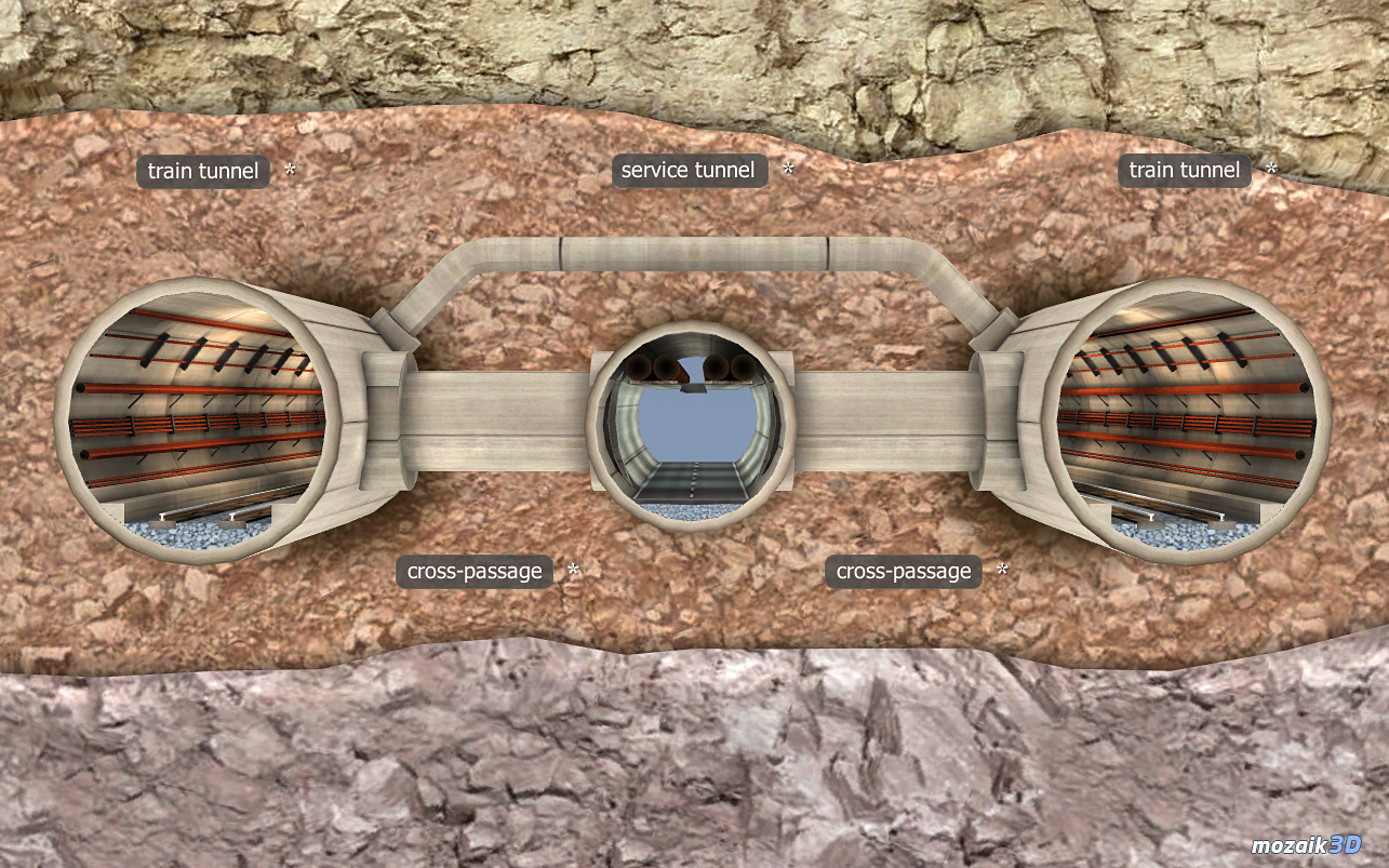 To demonstrate the Channel Tunnel and the high-speed TGV trains in it, we can use the following mozaik3D Interactive models.